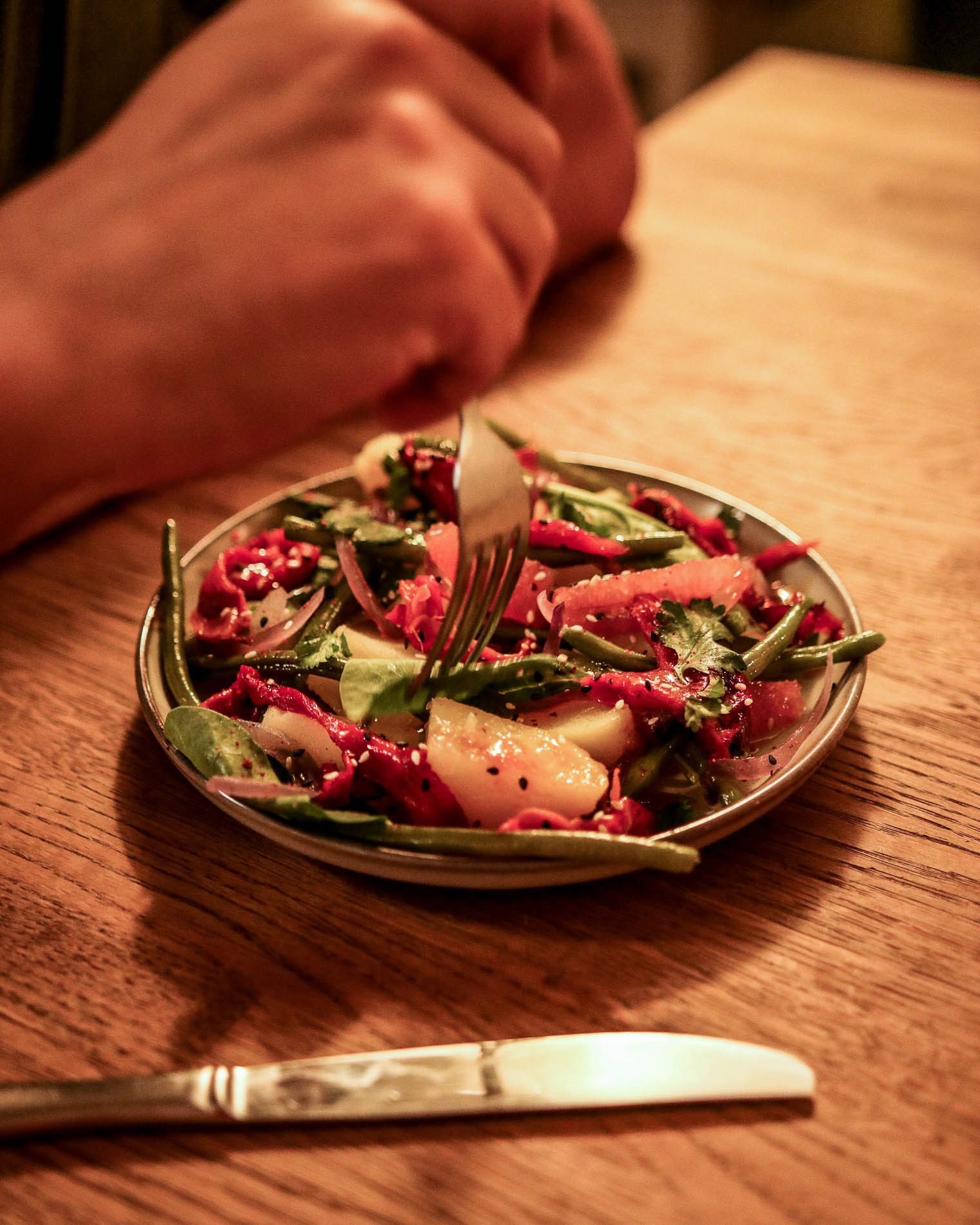 On y célèbre les produits locaux et une cuisine d’inspiration méditerranéenne, pensée pour être partagée.